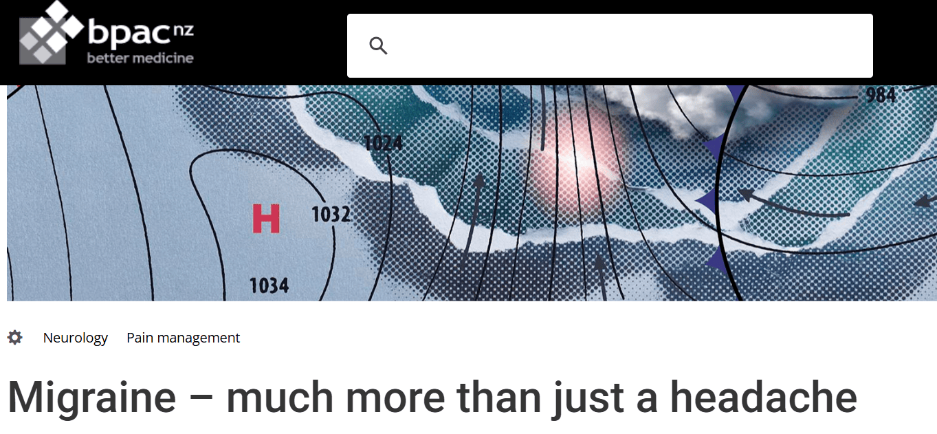 bpacNZ has just updated their online article on migraine (and their b-quick summary). This hadn’t been updated since 2017 – a lot has happened since then! The new article includes reference to the anti-CGRP medications now available in New Zealand and comprehensive discussion of migraine management.